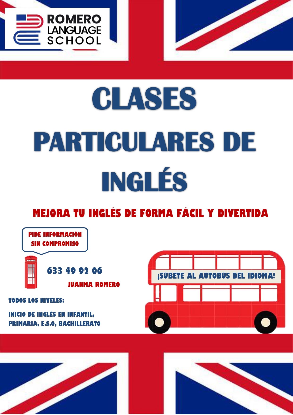 CLASES PARTICULARES DE INGLÉS ROMERO LANGUAGE SCHOOL2021-11-24 11:55:09GeneralRomero language school busca alumnos para impartir clases de inglés a distintos y muy variados niveles, desde infantil, hasta apoyo en bachillerato.