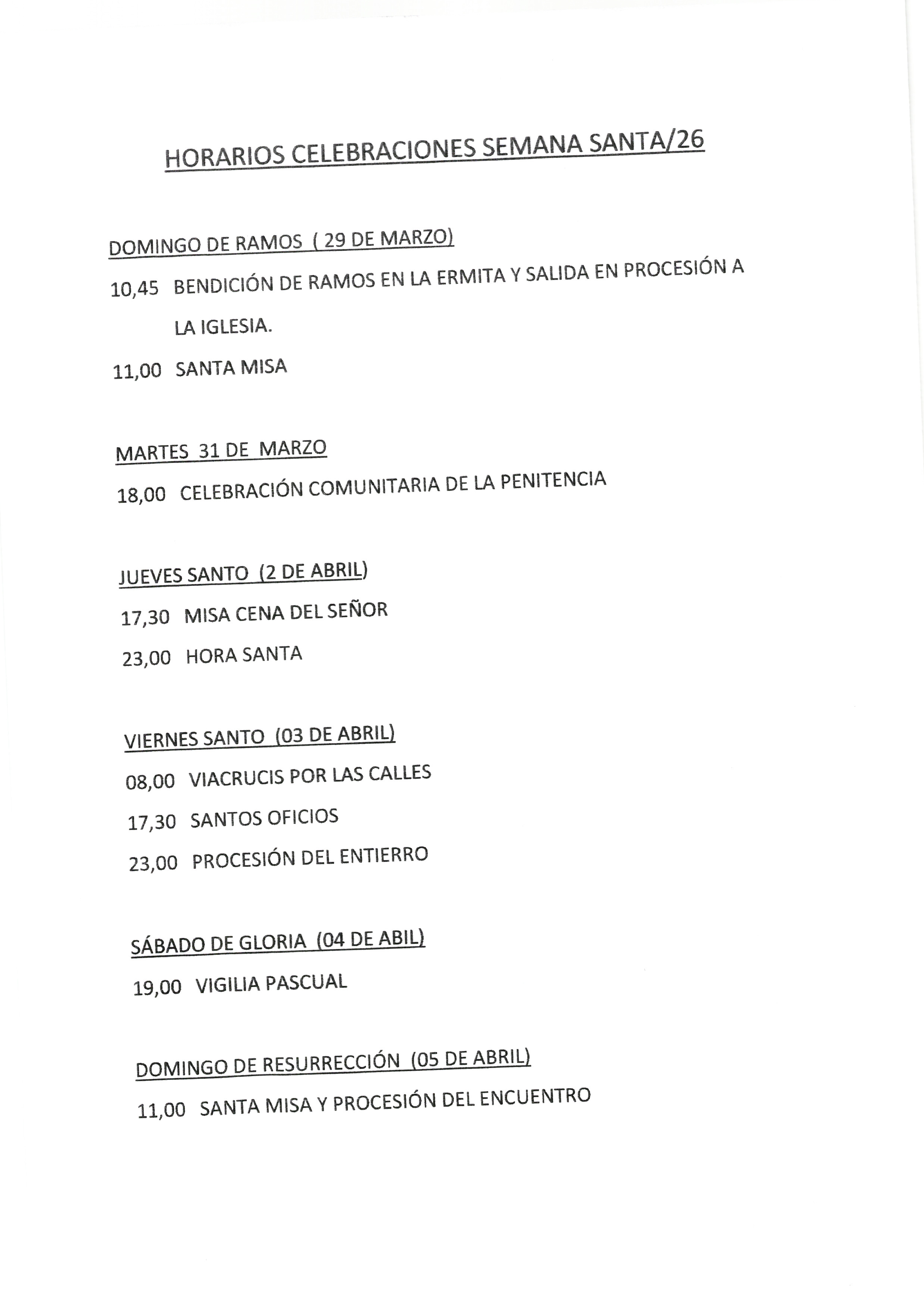 HORARIO DE CELEBRACIONES SEMANA SANTA 2026