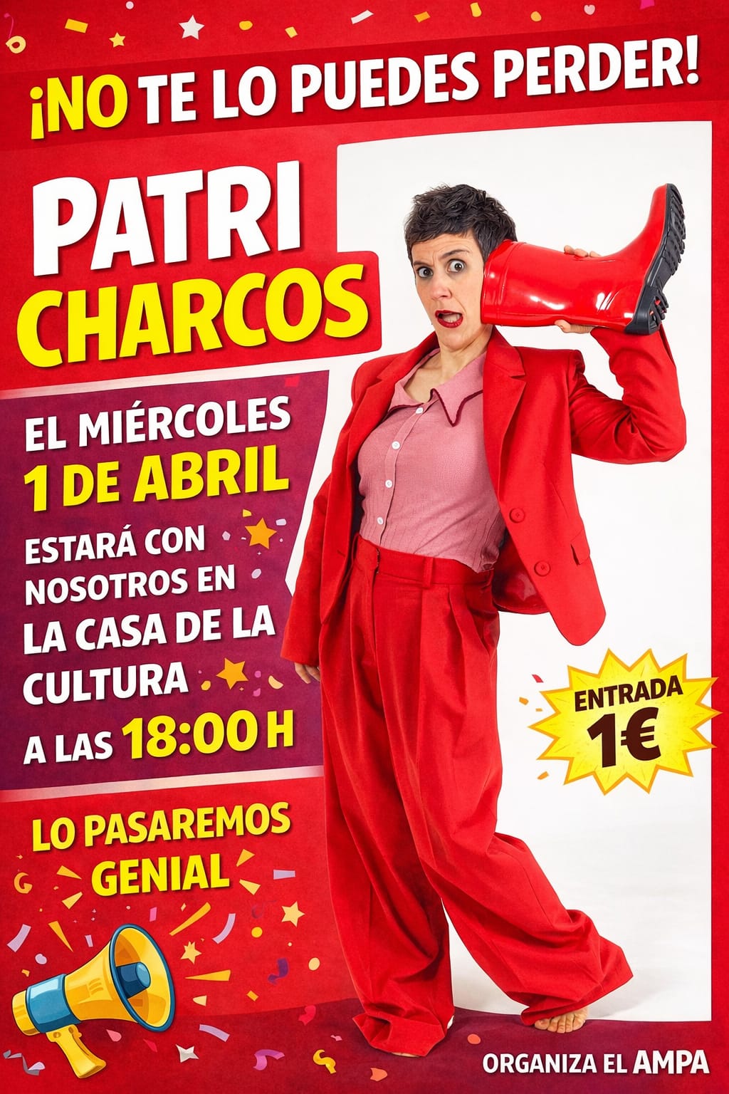 🦸🏻♀️ACTUACIÓN PATRI CHARCOS - El miércoles 1 de abril, en la Casa de la Cultura, a las 18:00 horas.