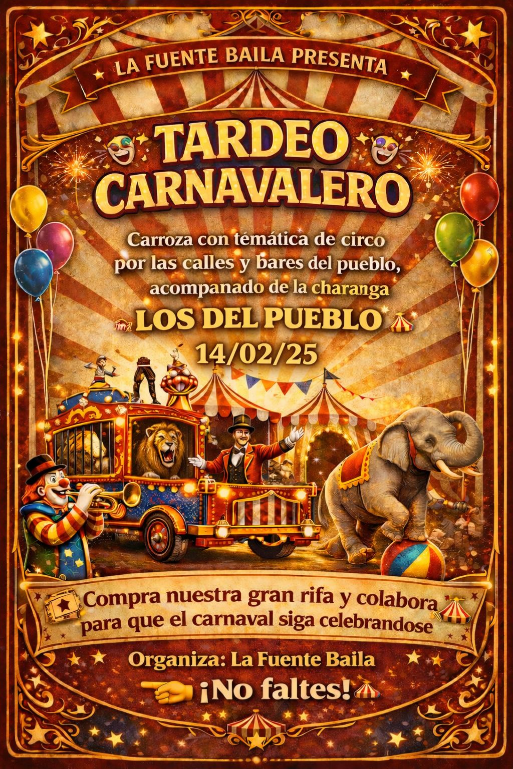 - TARDEO CARNAVALERO (Desfile con la carroza por las calles La Fuente acompañados de la @charanga_losdelpueblo ) finalizará en la Casa de la Cultura.