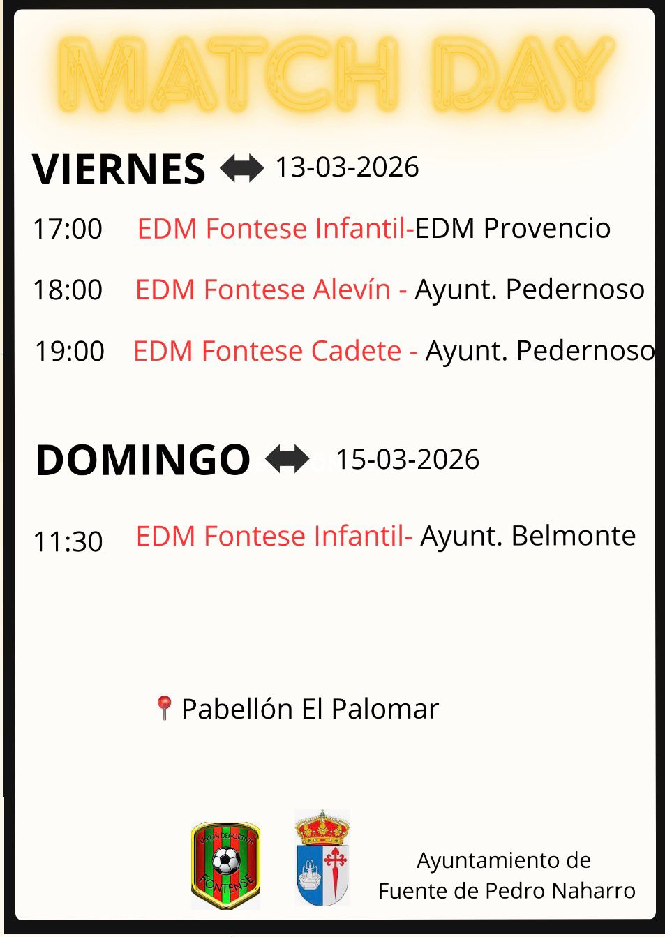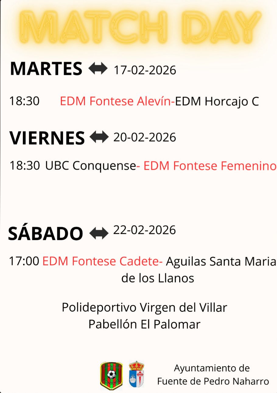 🟢Hoy Martes, 17 de febrero a partir de las 18:30 horas, en el Pabellón el Palomar (Fuente de Pedro Naharro ).