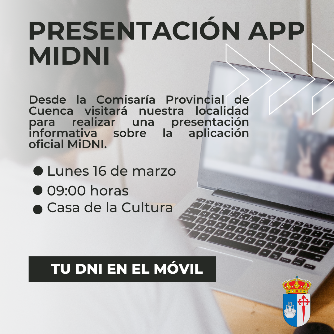La Comisaría Provincial de Cuenca, en colaboración con el Ayuntamiento de Fuente de Pedro Naharro, visita este lunes, 16 de marzo, nuestra localidad para realizar una presentación informativa sobre la aplicación oficial MiDNI, que permite llevar el DNI en el teléfono móvil y acreditar la identidad de forma digital, con total validez y seguridad.