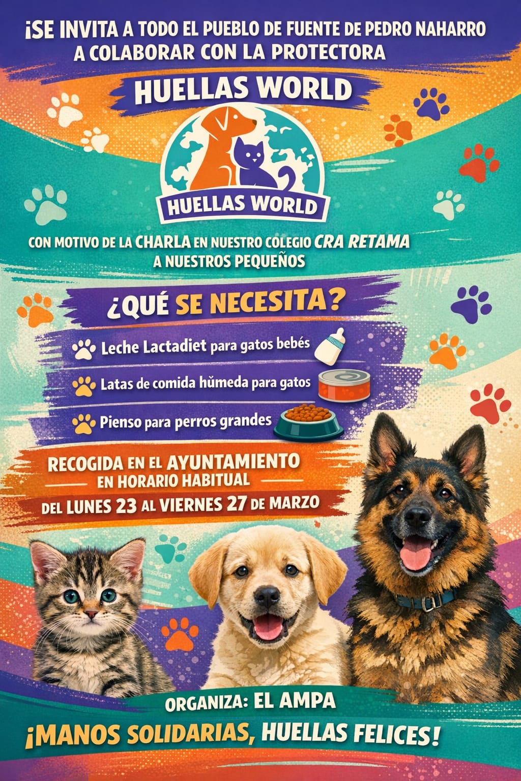 La protectora de animales @huellasworld visita este viernes el @cra_retama para dar una charla de sensibilización a los niños y niñas sobre la importancia de cuidar a los animales.