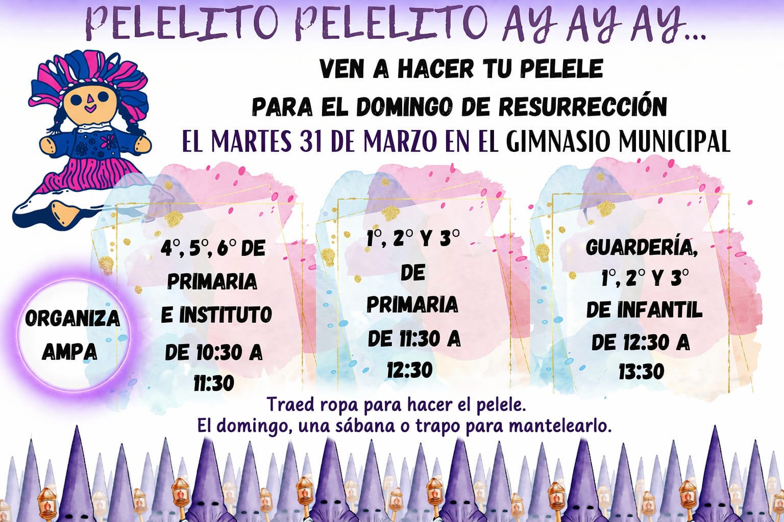 TALLER PELELES- Mañana 31 de marzo, en el Gimnasio Municipal Desde las 10:30 hasta las 13:30 horas (en tres turnos).