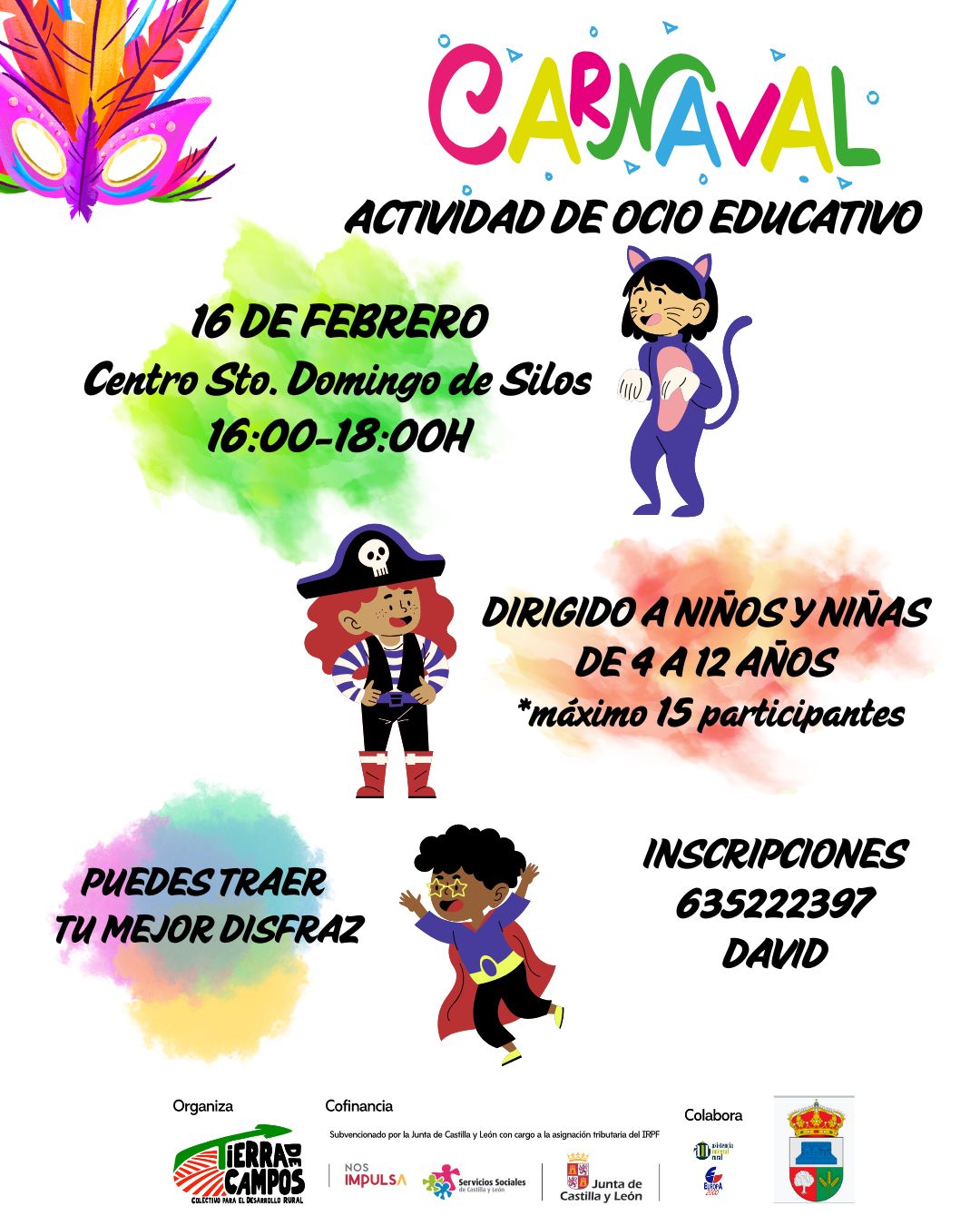 SE ADJUNTA CARTEL INFORMATIVO SOBRE ACTIVIDAD DE OCIO NIÑ@S DE 4 A 12 AÑOS, CON MOTIVO DE LA CELEBRACIÓN DE LOS CARNAVALES 2026, A CELEBRAR EL DÍA 16 DE FEBRERO EN EL CENTRO SOCIAL SANTO DOMINGO, EN HORARIO DE 16:00 A 18:00 HORAS