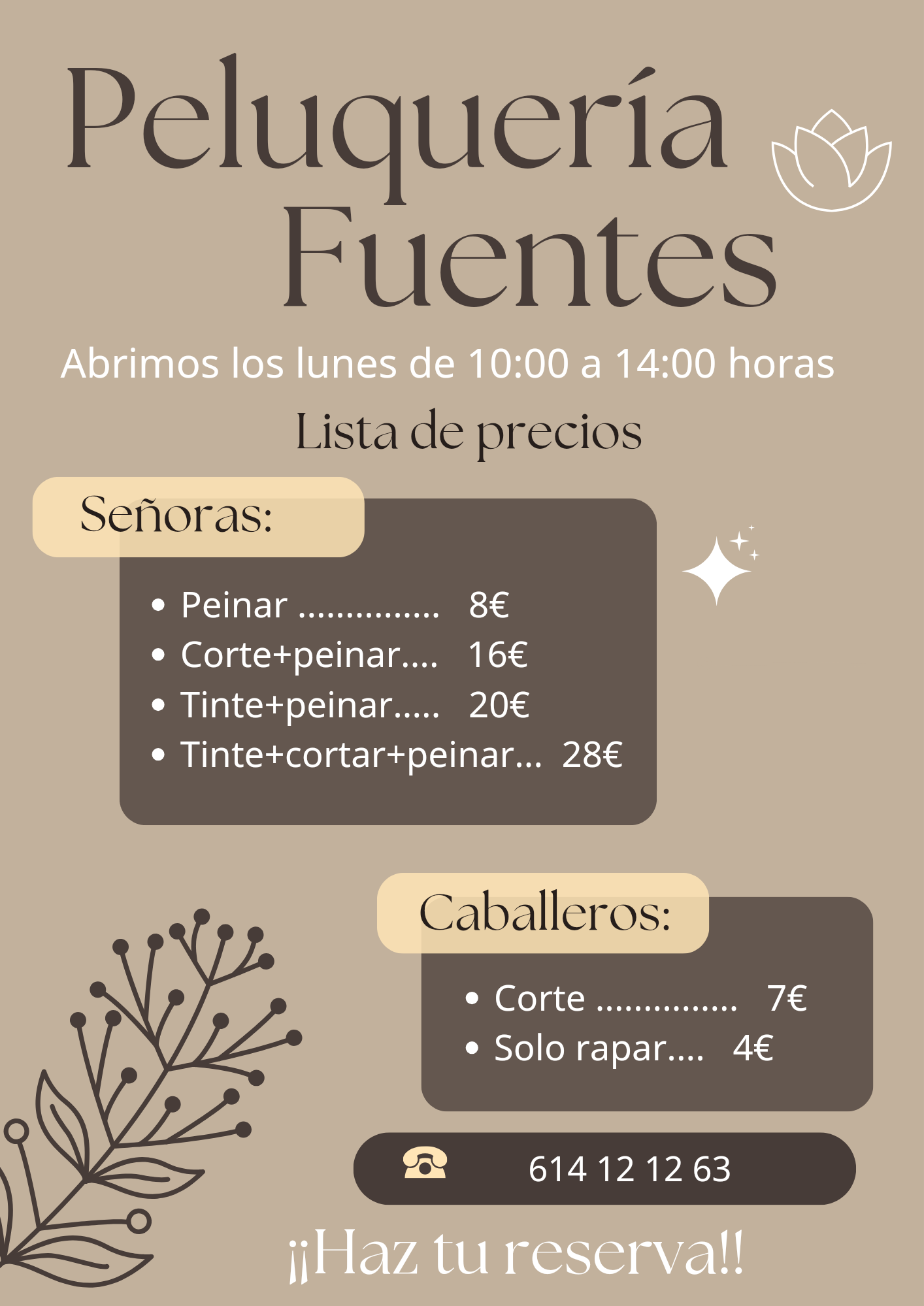 Adjuntamos cartel informativo con el servicio. Todas las preguntas se resolverán ese día con la peluquera. El teléfono de reservas todavía no está activo.