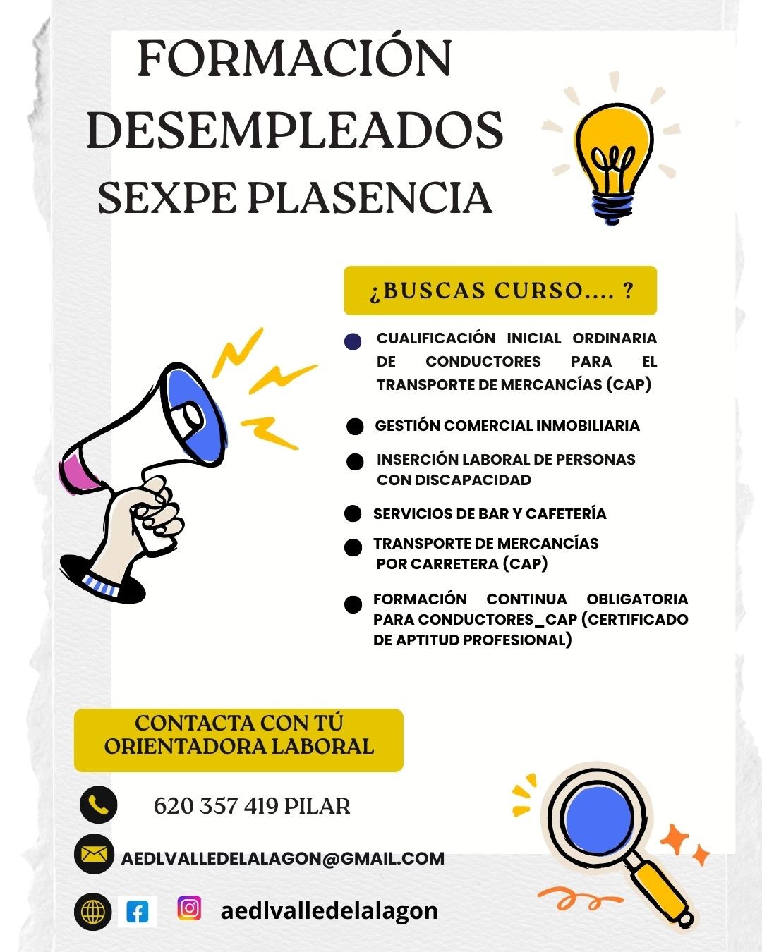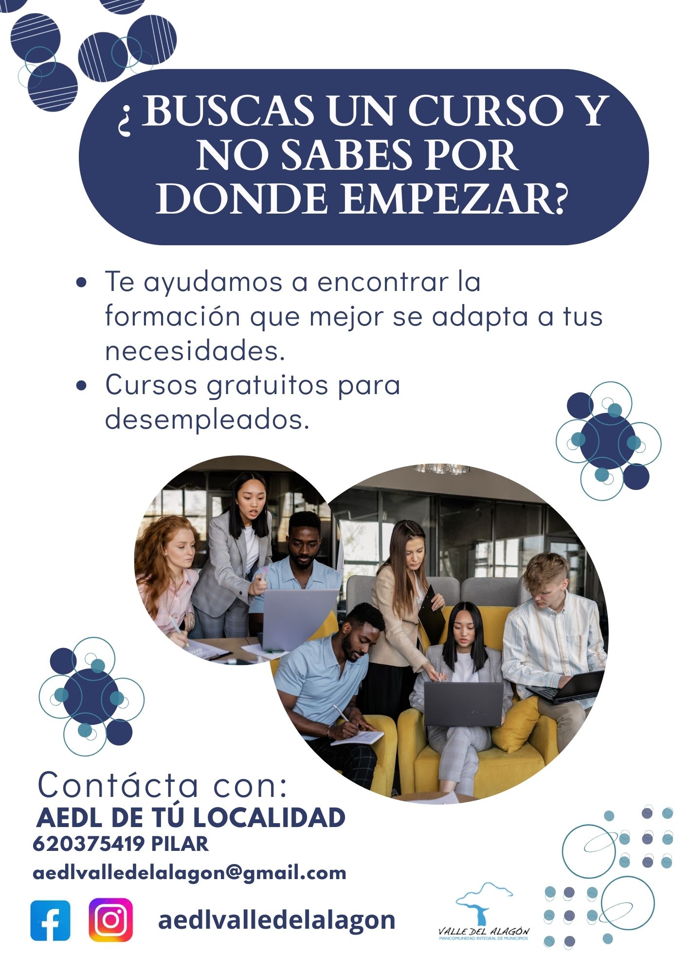 Es un servicio público y gratuito, que ofrece acciones de orientación y prospección, en colaboración con tu Ayuntamiento.