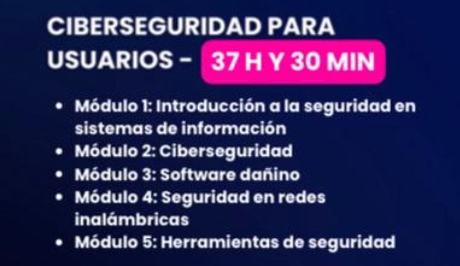 SE INFORMA QUE SE VAN A REALIZAR DOS CURSOS GRATUITOS HOMOLOGADOS Y CON DIPLOMA ACREDITATIVO SOBRE CIBERSEGURIDAD Y MEDIOS ELECTRÓNICOS DURANTE LOS MESES DE OCTUBRE Y NOVIEMBRE EN NUESTRA LOCALIDAD