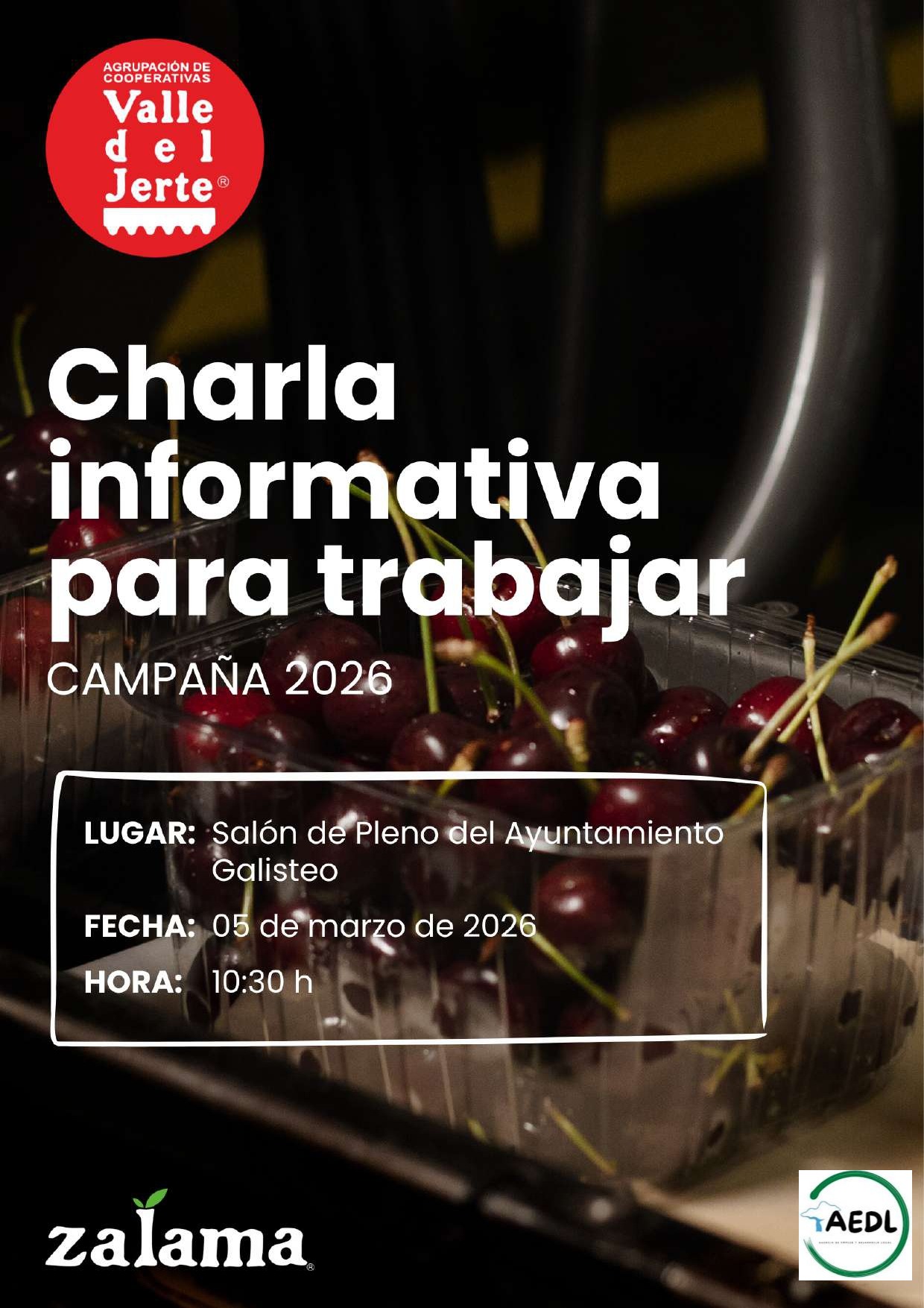 Se informa que el día 5 de marzo a las 10.30 habrá una charla informativa en el salón de Pleno del Ayuntamiento , para trabajar en la campaña 2026 en la agrupación de cooperativas Valle del Jerte, más información Orientadora laboral de tu Ayuntamiento.