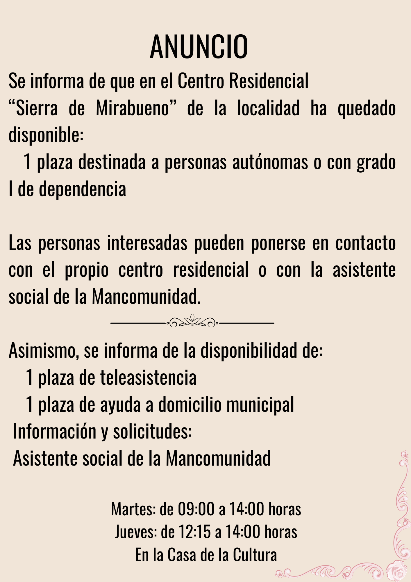 Las actividades programadas se realizarán en el Corral de Concejo, manteniéndose la misma fecha y horario previamente establecidos.