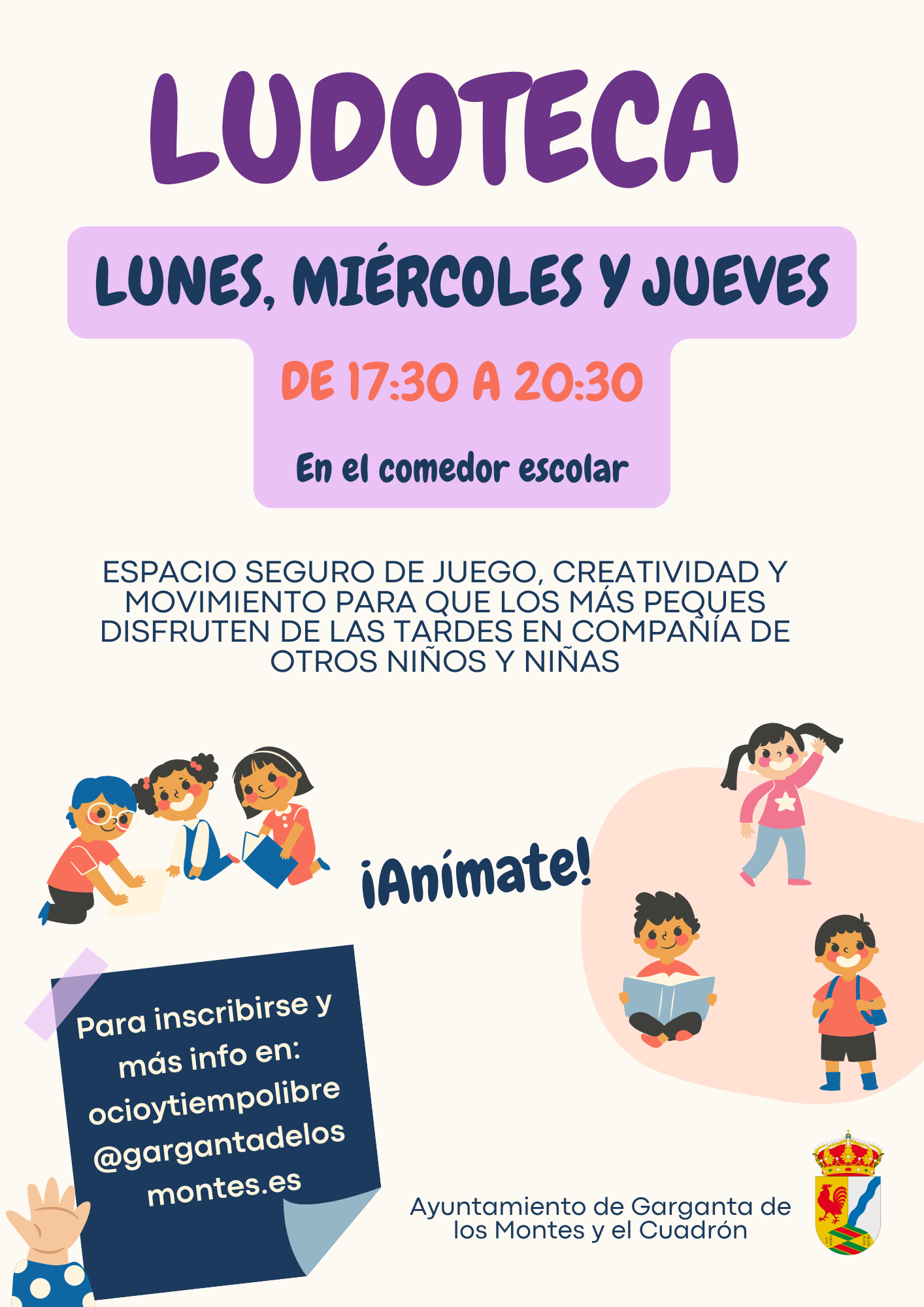 LUDOTECA: Lunes, Miércoles y Jueves de 17.30 h a 20.30 h (Comedor Escolar)
