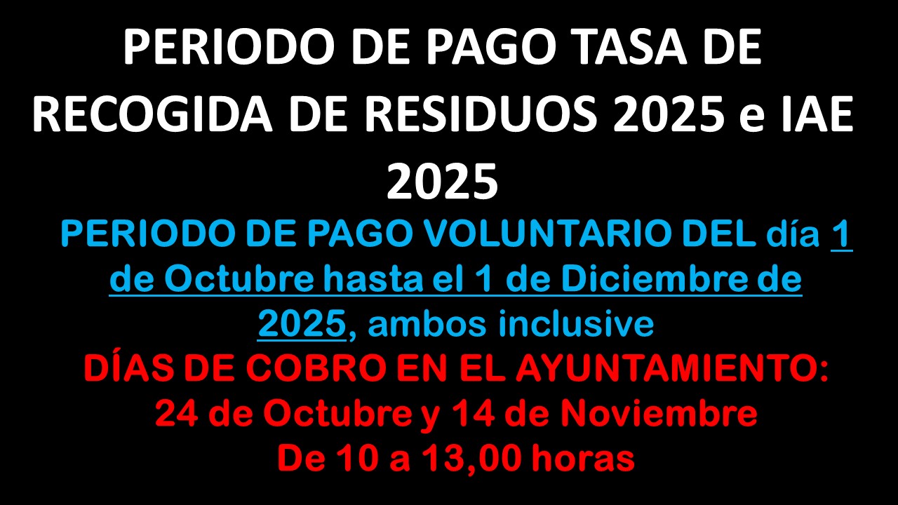 ANUNCIO DE COBRANZA, TASA DE RECOGIDA DE RESIDUOS 2025 y EL IMPUESTO DE ACTIVIDADES ECONÓMICAS 2025