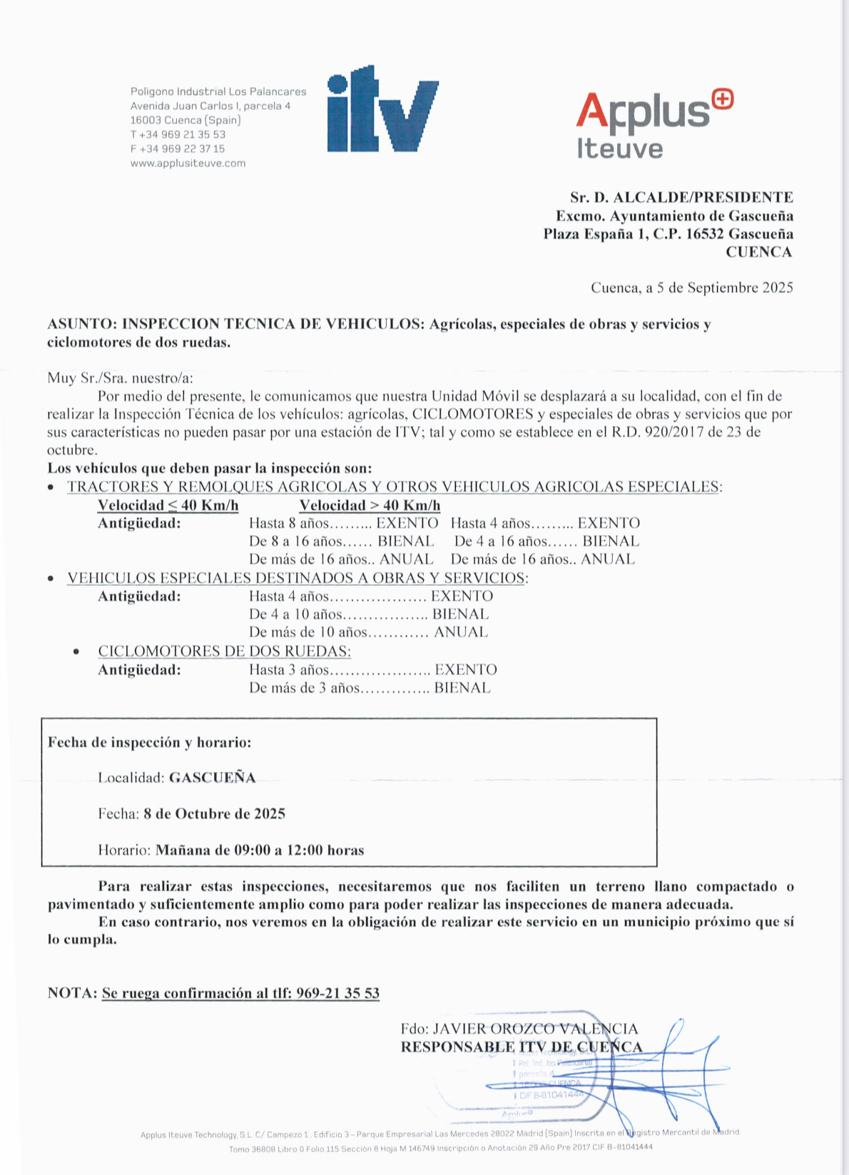 INSPECCION TECNICA DE VEHICULOS: Agrícolas, especiales de obras y servicios y ciclomotores de dos ruedas