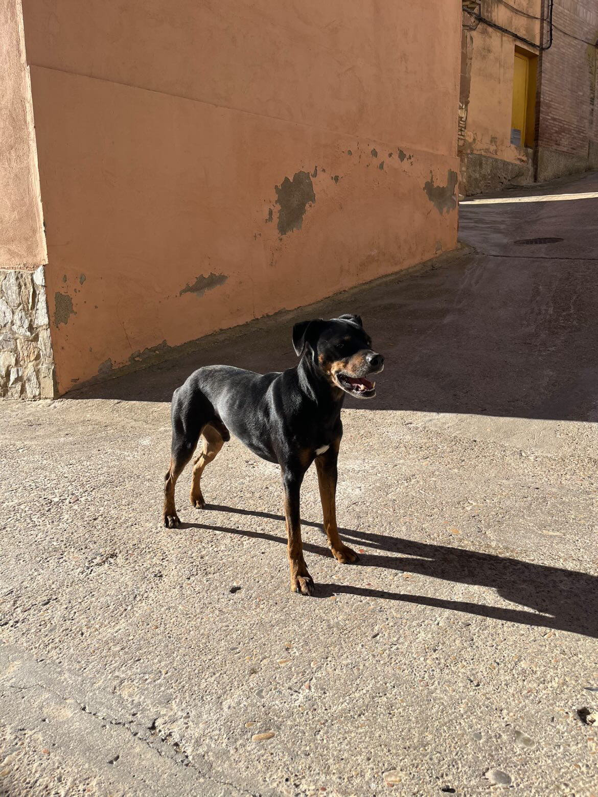 • Raza: Parece ser un cruce o mestizo de tamaño mediano/grande.