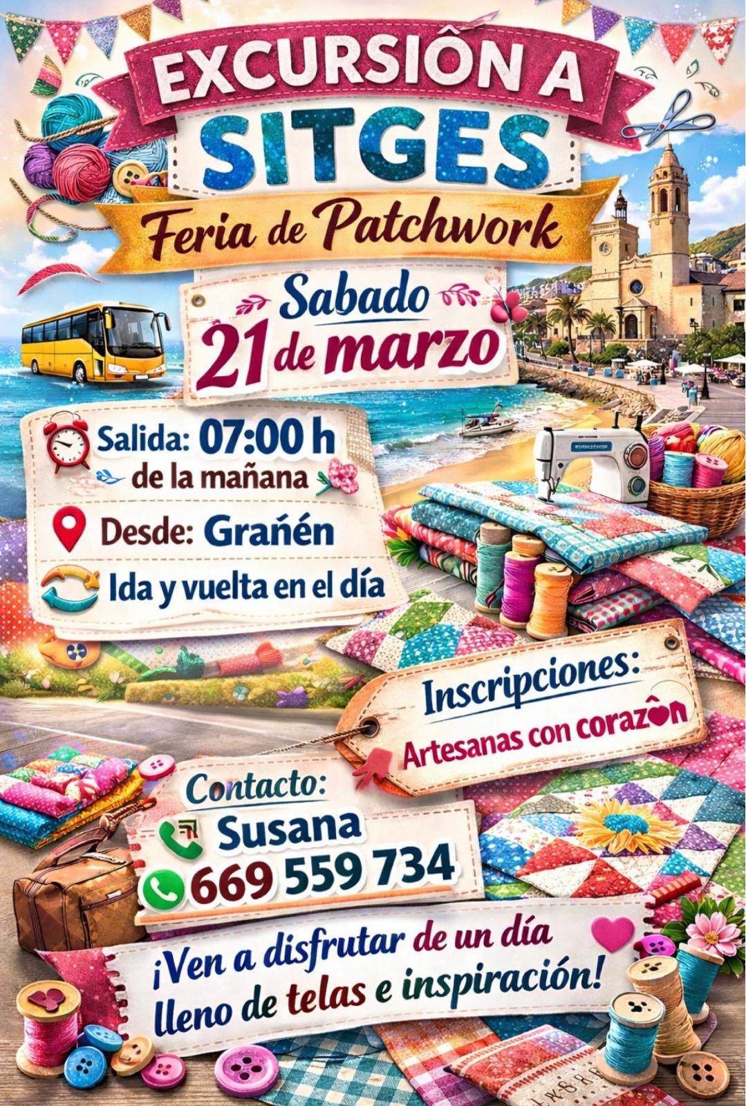El Ayuntamiento informa de la organización de una excursión a Sitges con motivo de la Feria de Patchwork, que tendrá lugar el próximo: