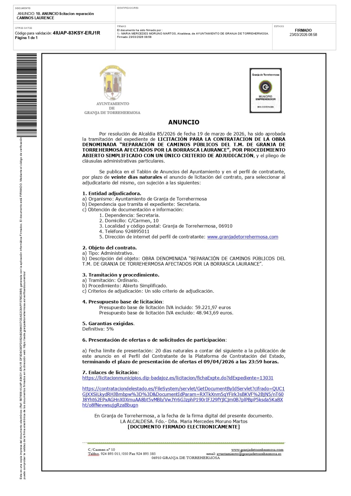 ANUNCIO LICITACIÓN