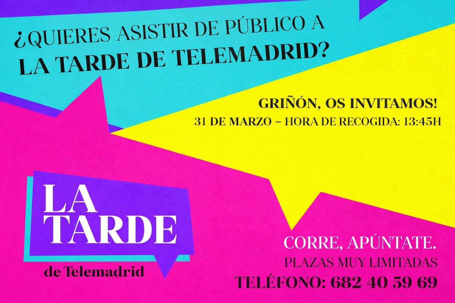 ¿Te apetece pasar una tarde diferente y divertida? Te invitamos a asistir como público al programa “La Tarde” de Telemadrid, presentado por Christian Gálvez.