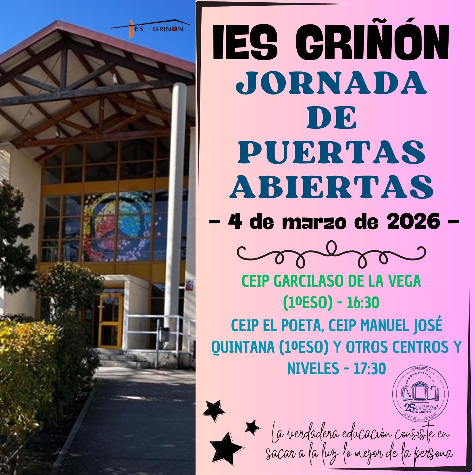 📓📣Jornadas de puertas abiertas --Curso 2026-2027