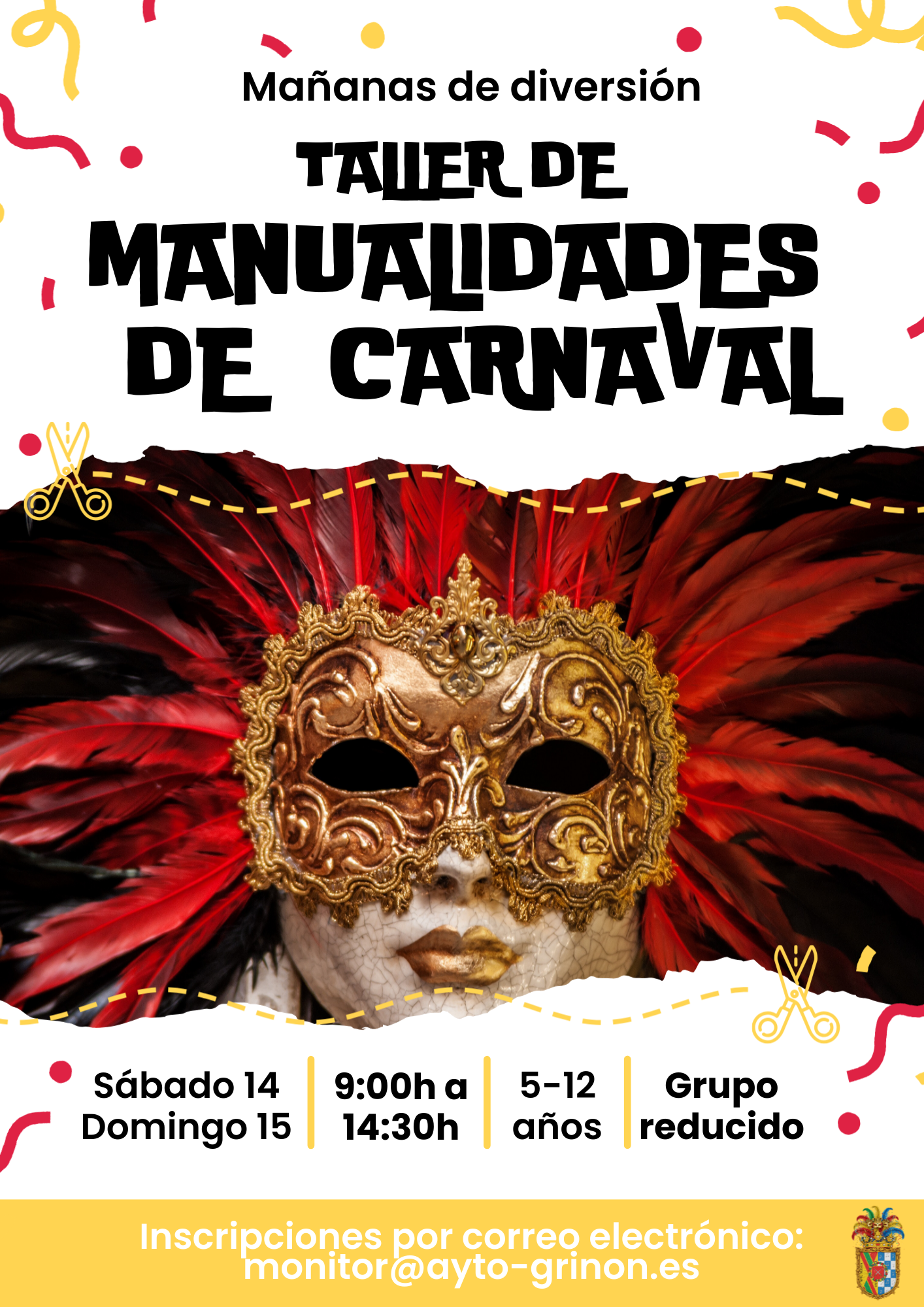 Una mañana llena de color, imaginación y diversión con actividades de manualidades pensadas especialmente para niños y niñas de 5 a 12 años. Un espacio donde podrán crear sus propios complementos de Carnaval, desarrollar su creatividad y compartir momentos únicos con nuevos amigos.