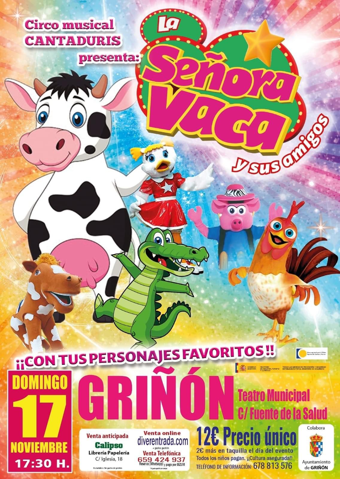 Este domingo 17 en el Teatro Municipal a las 17:30h tendrá lugar la representación de la señora vaca y sus amigos con tus personajes favoritos. Toda la información de la venta de entradas en el cartel.