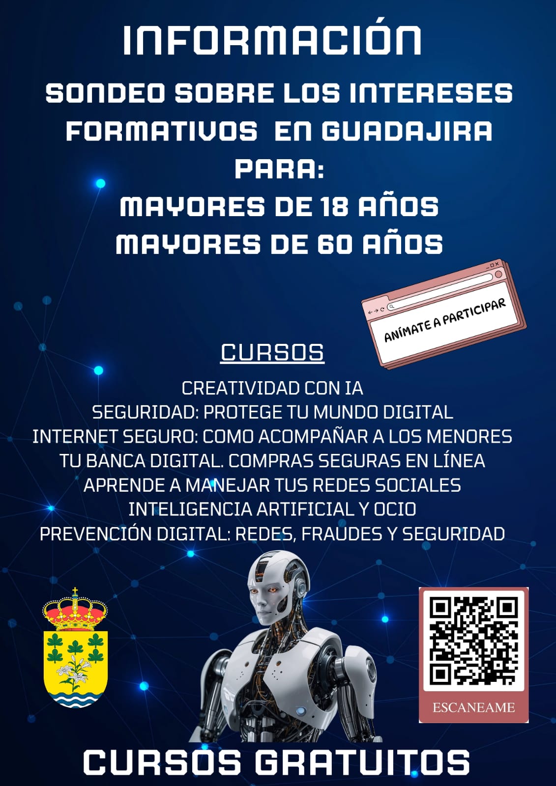 tras la encuesta previa de interés, han sido seleccionado los siguientes 3 cursos para todos aquellos interesados todavía pueden apuntarse en el ayuntamiento: