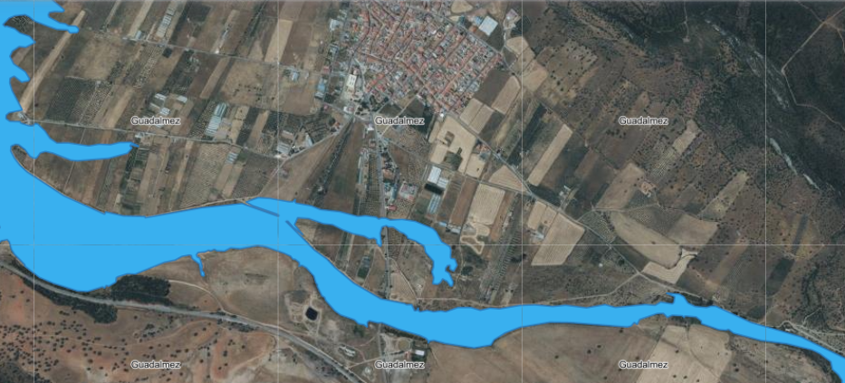 Adjuntamos 2 fotos de dónde está previsto que inunde la cola del embalse en caso de que siga subiendo el nivel.