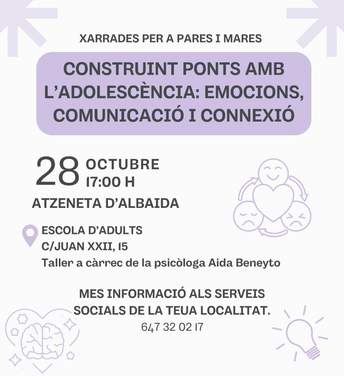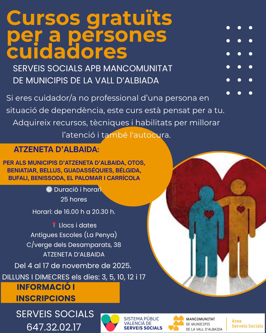 Als Serveis Socials de la teua localitat o al telèfon 647 32 02 17.
