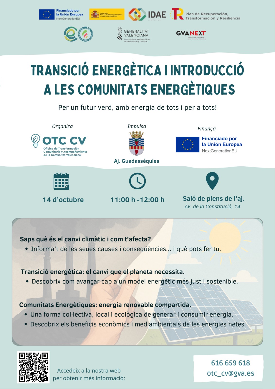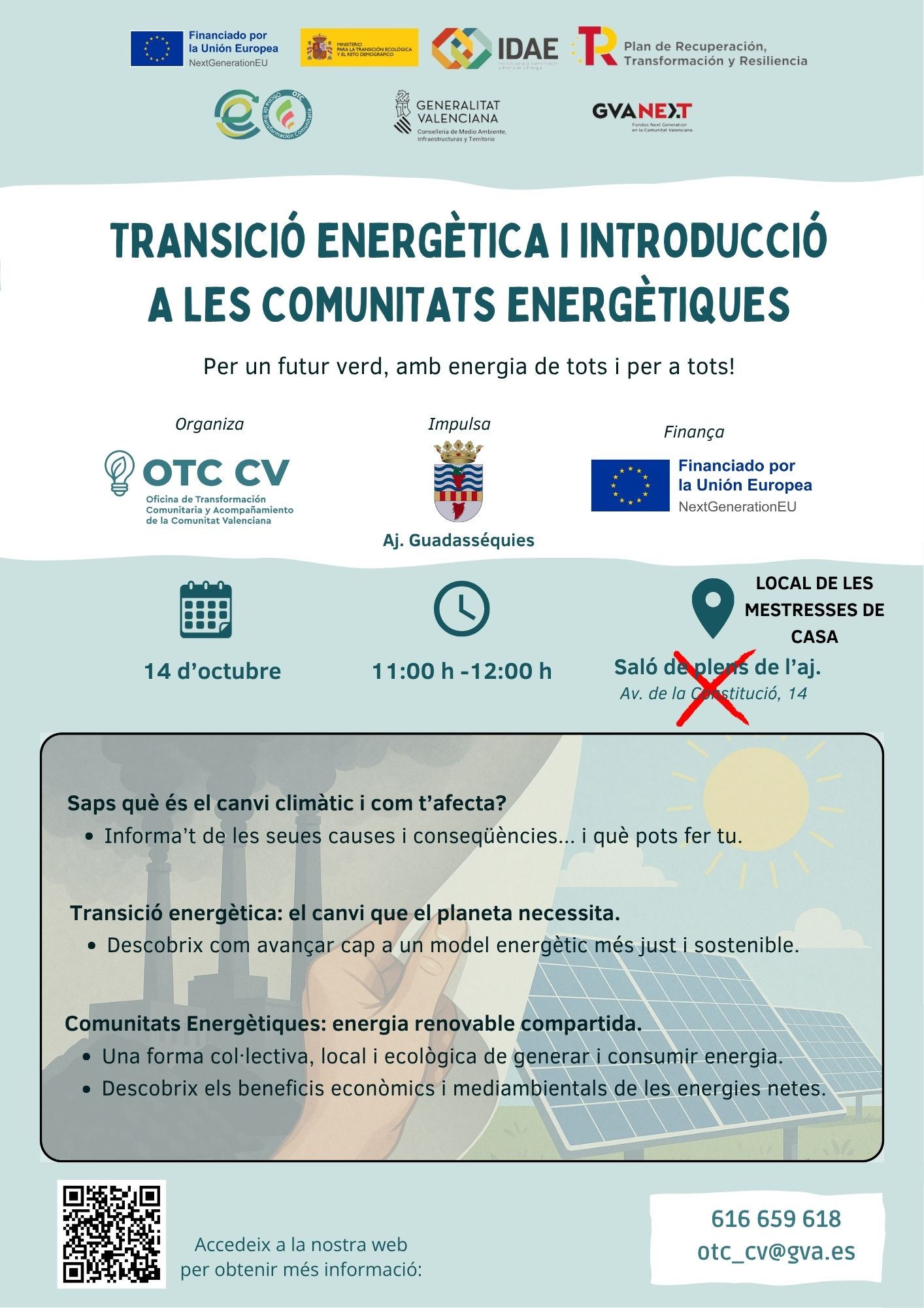 📢 Es recorda que demà a les 11:00 h es realitzarà una xarrada informativa per part d'un equip d'experts en canvi climàtic, energies renovables i comunitats energètiques. Vos animem a tots/totes a participar i conéixer bones pràctiques energètiques tant per al planeta com per la nostra butxaca. Finalment la jornada serà al local de les "Ames de Casa".