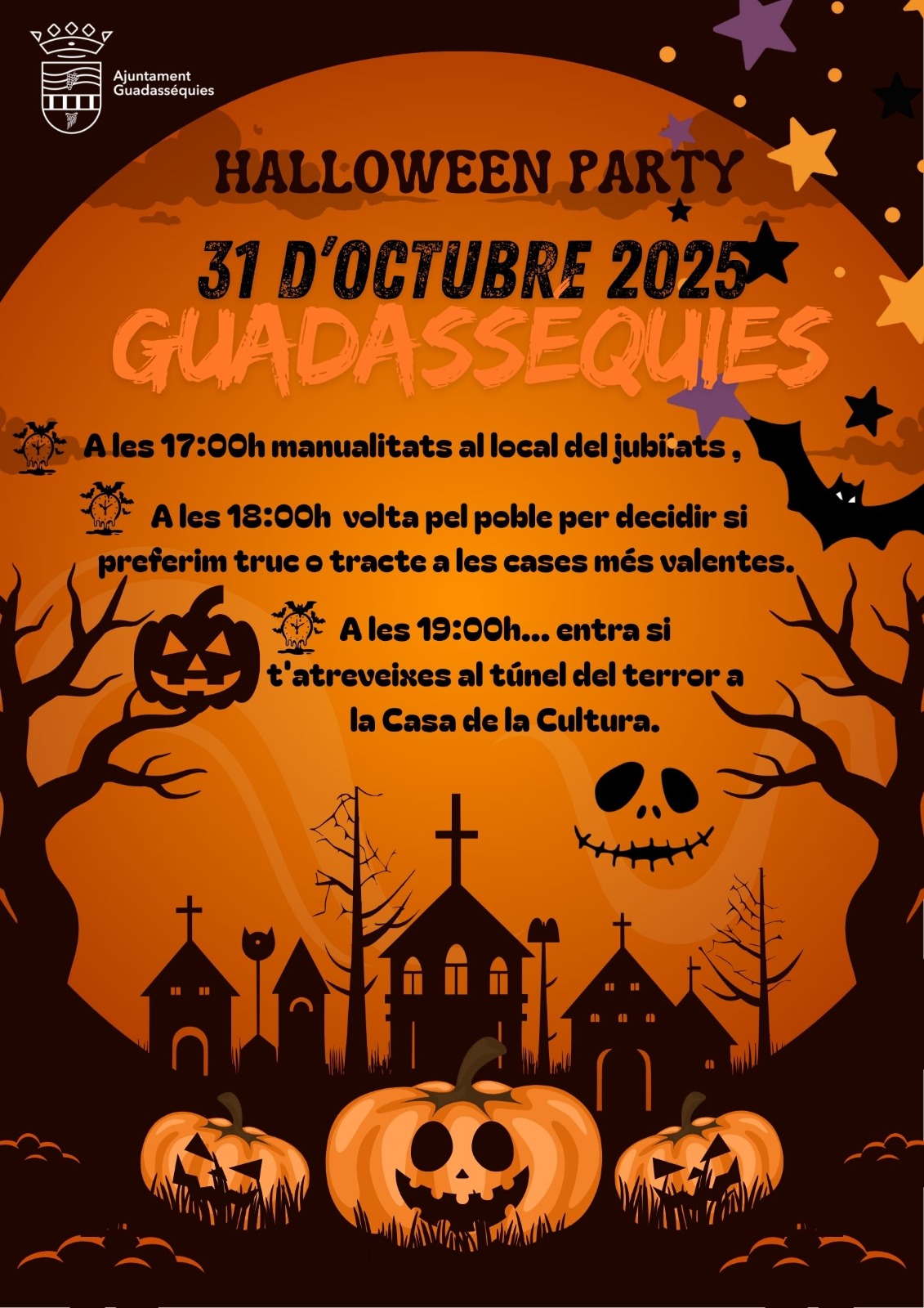 👉🏼🕐 A més, l’Ajuntament i el CRA “Riu d’Albaida” de Guadasséquies convoquen a tota la ciutadania a guardar 1 minut de silenci demà, dimecres, 29 d'octubre a les 12:00 h a la porta de l’Ajuntament, com a mostra de suport i respecte.