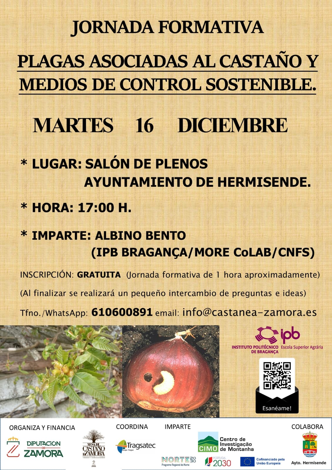 Se celebrará una jornada formativa sobre las plagas del castaño y medios de control sostenible.