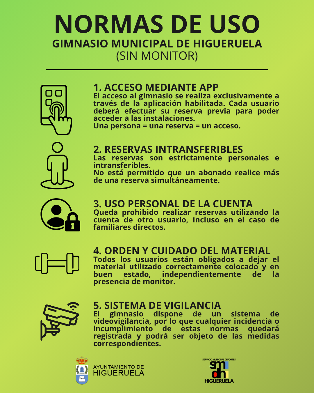 NORMAS DE USO DEL GIMNASIO MUNICIPAL DE HIGUERUELA SIN MONITOR.