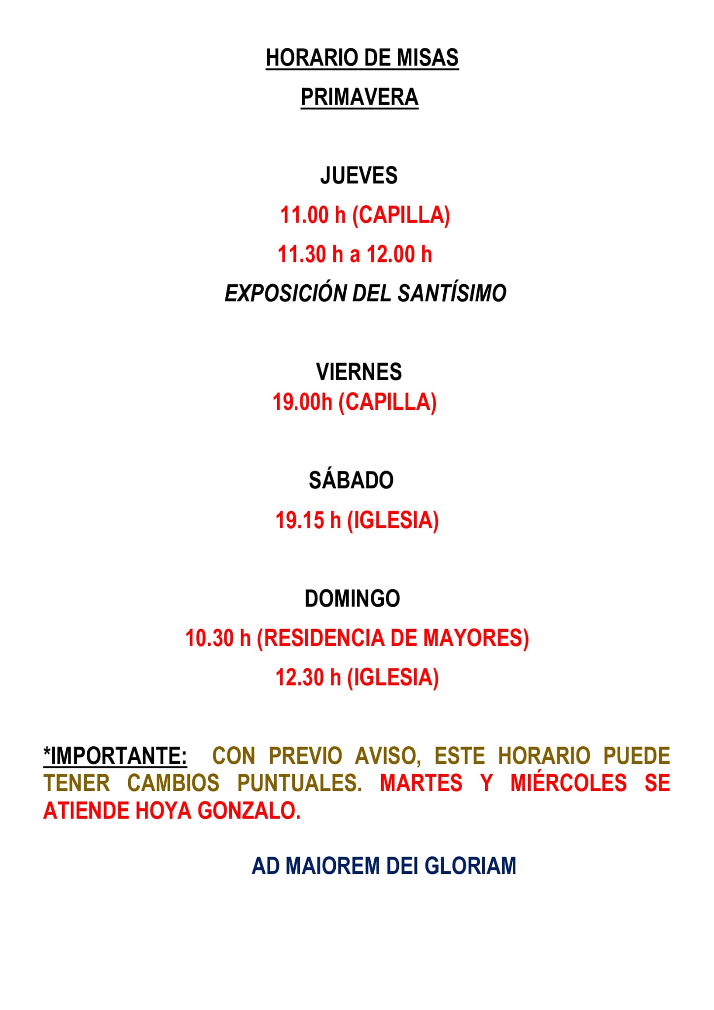 HORARIO MISAS PRIMAVERA