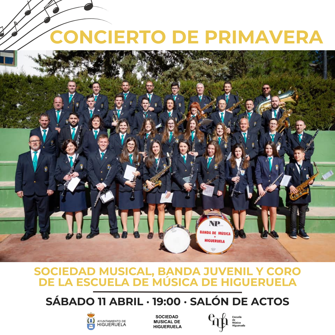 Con la llegada de la primavera, la Sociedad Musical de Higueruela, la Banda Juvenil y el Coro de la Academia de Música de Higueruela nos traen su tradicional “Concierto de Primavera”.