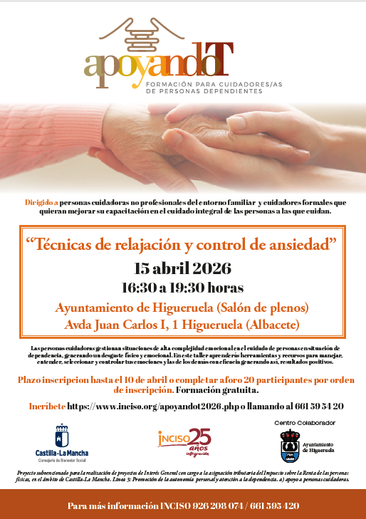 TALLER GRATUITO DE RELAJACIÓN Y CONTROL DE LA ANSIEDAD PARA CUIDADORAS DE PERSONAS DEPENDIENTES