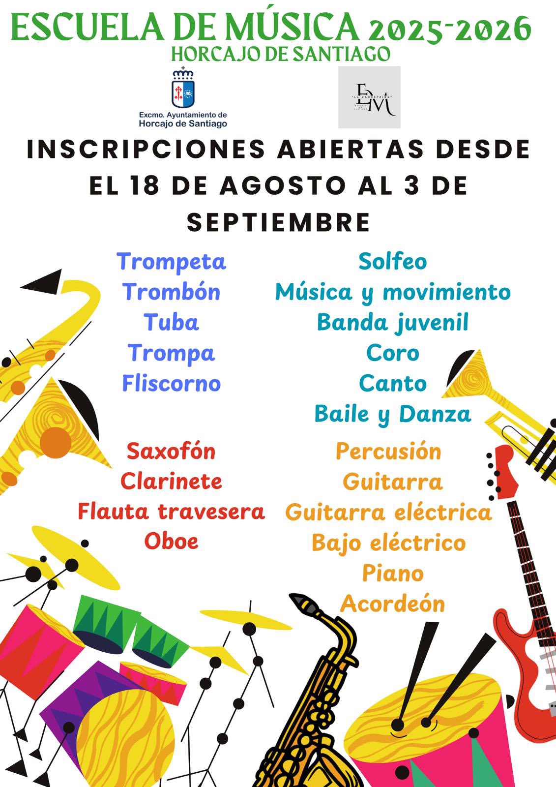 ABIERTAS INSCRIPCIONES PARA LA ESCUELA DE MÚSICA CURSO 2025-2026