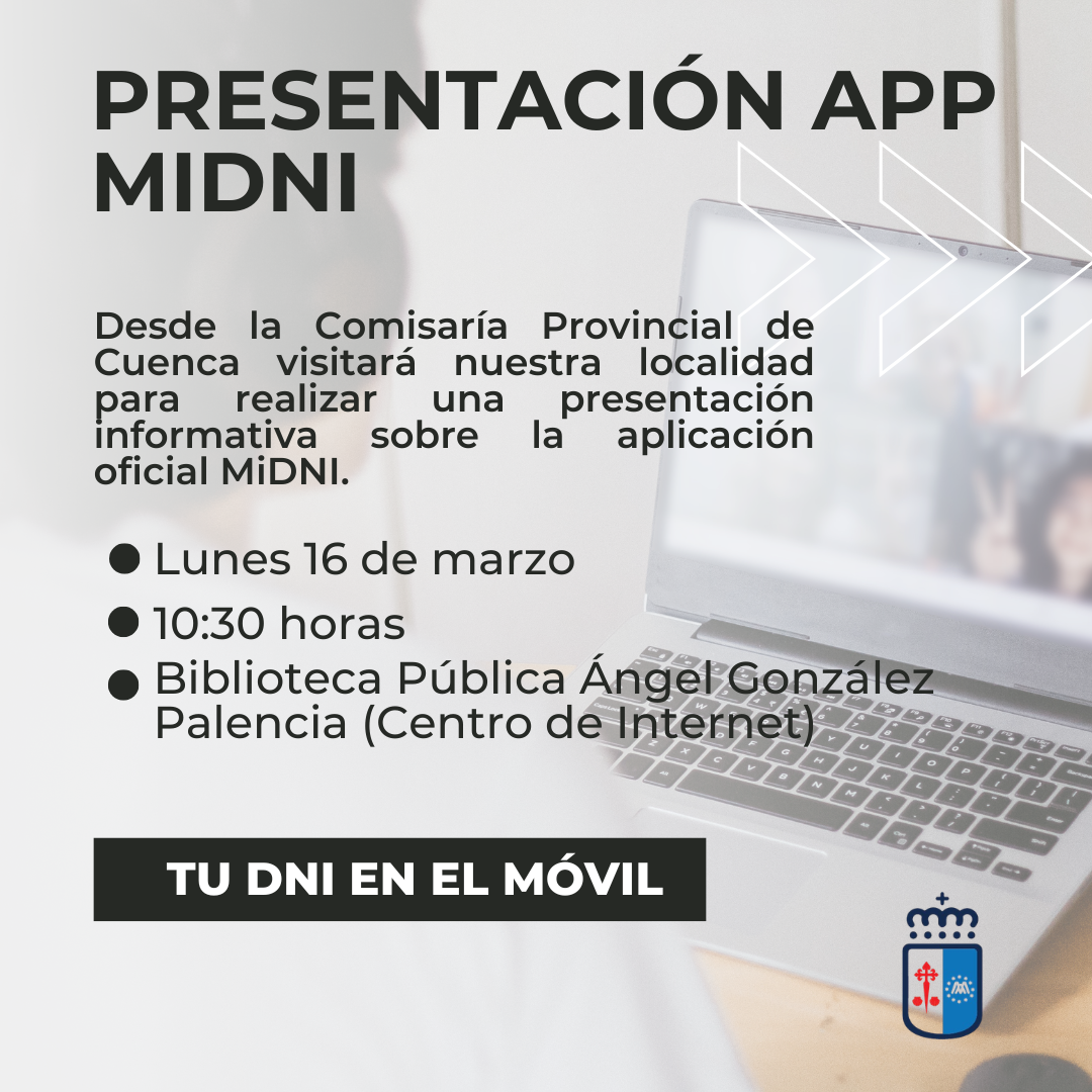 La Comisaría Provincial de Cuenca, en colaboración con el Ayuntamiento de Horcajo de Santiago, visita este lunes, 16 de marzo, nuestra localidad para realizar una presentación informativa sobre la aplicación oficial MiDNI, que permite llevar el DNI en el teléfono móvil y acreditar la identidad de forma digital, con total validez y seguridad.