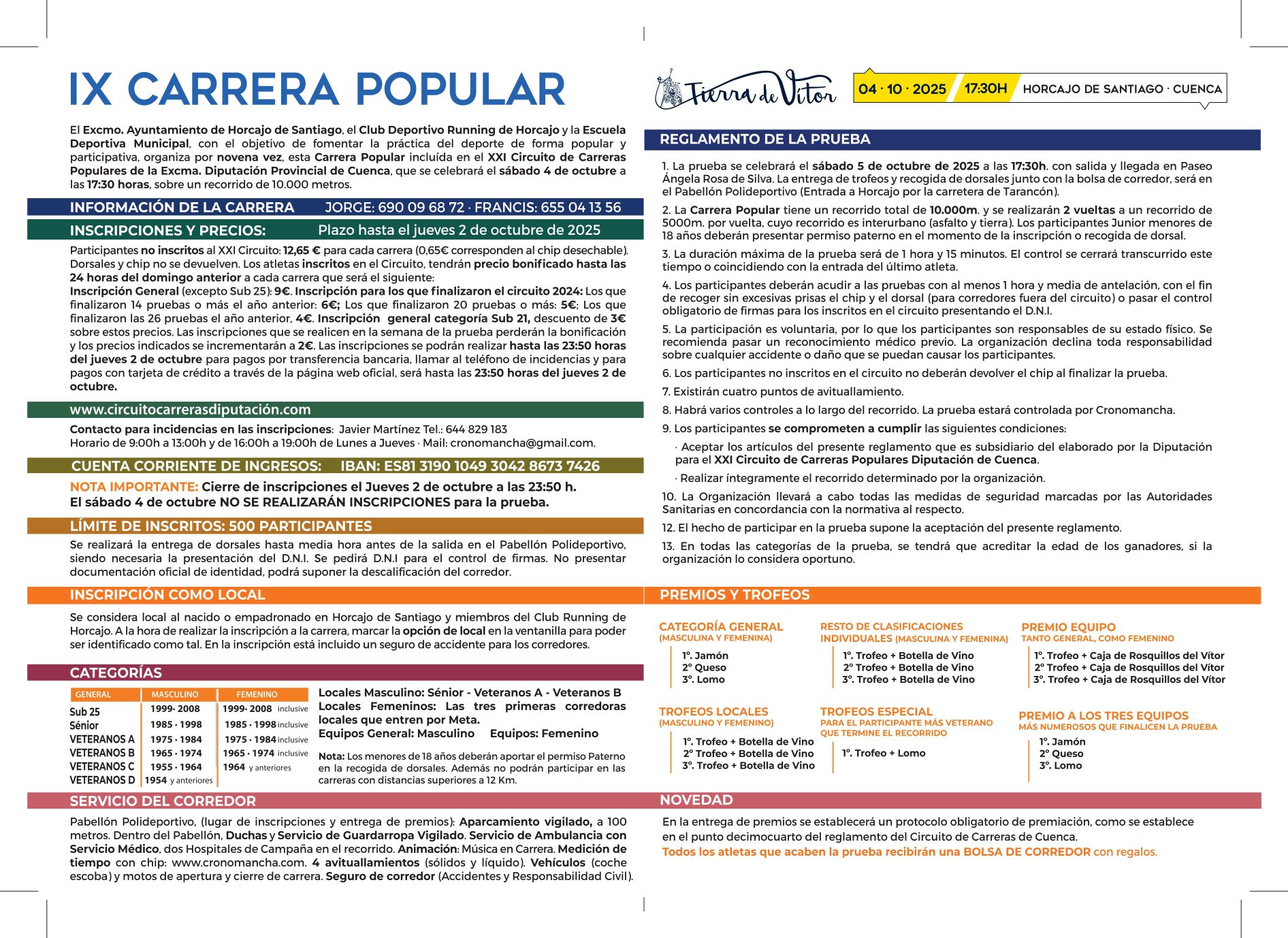 Categorías: Junior, Sénior, Veterano, Equipo General y Equipo Femenino