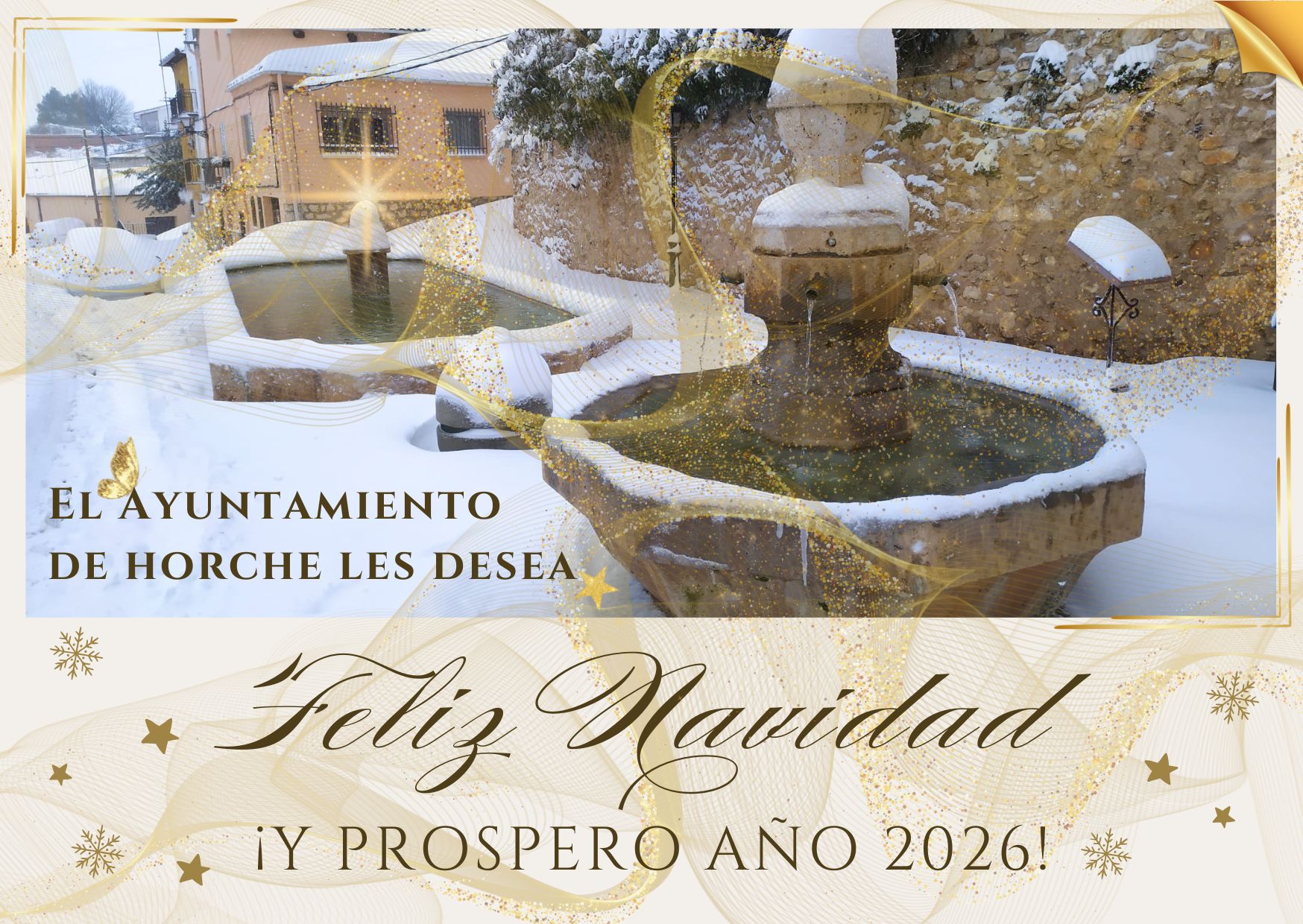 En estas fechas tan especiales desde el Ayuntamiento de Horche trasladamos a todos los vecinos y vecinas nuestros mejores deseos de Feliz Navidad y próspero Año Nuevo.