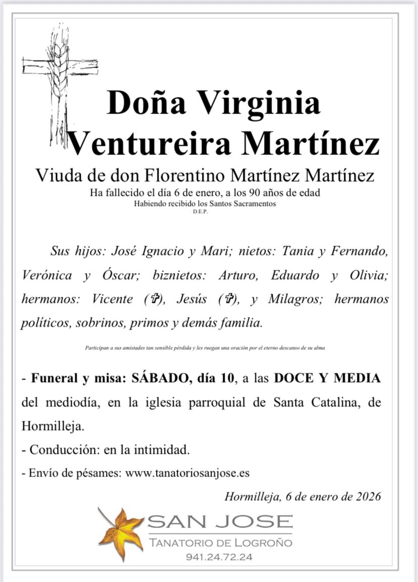 FALLECIMIENTO DE VIRGINIA VENTUREIRA MARTÍNEZ
