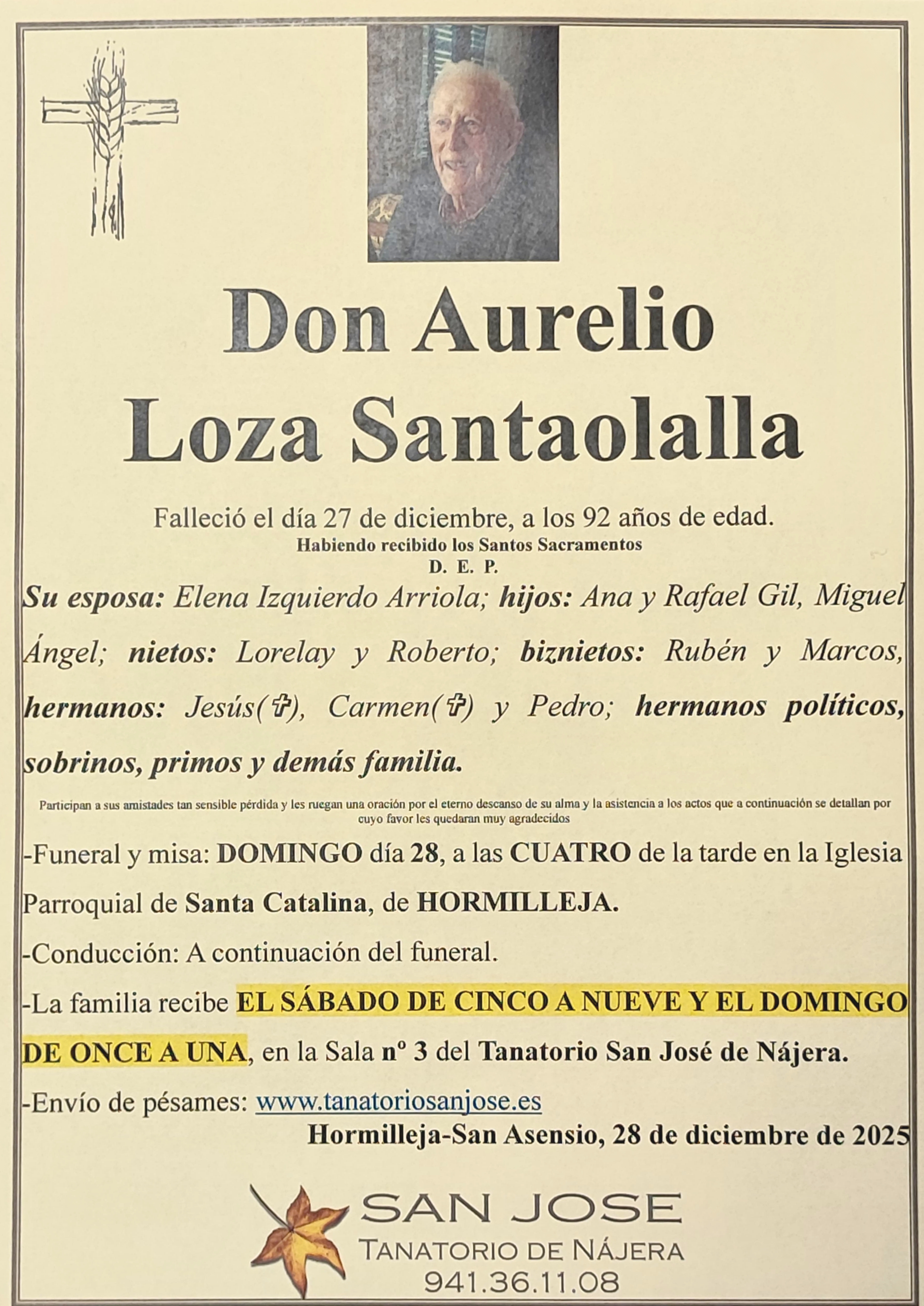 FALLECIMIENTO DE AURELIO LOZA SANTAOLALLA