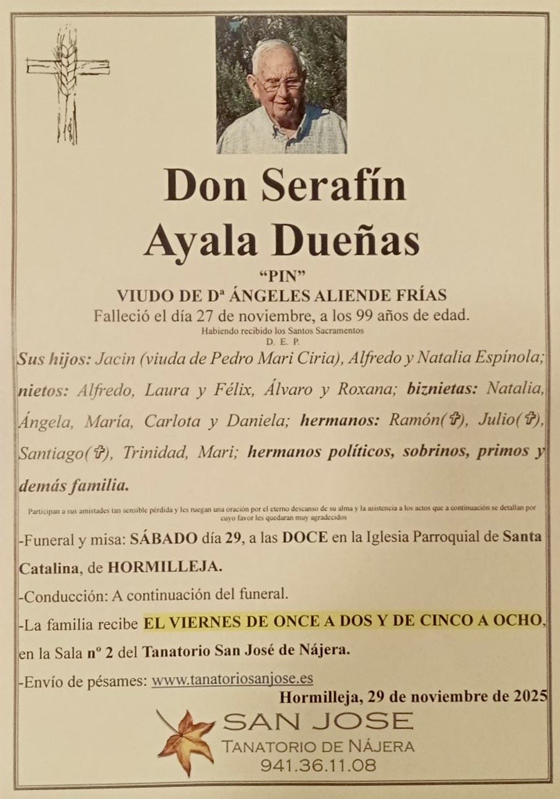 FALLECIMIENTO DE SERAFÍN AYALA DUEÑAS