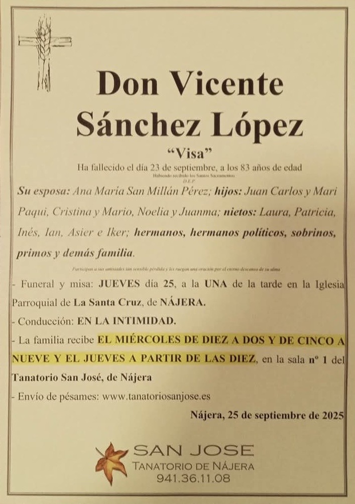 FALLECIMIENTO DE VICENTE SÁNCHEZ LÓPEZ