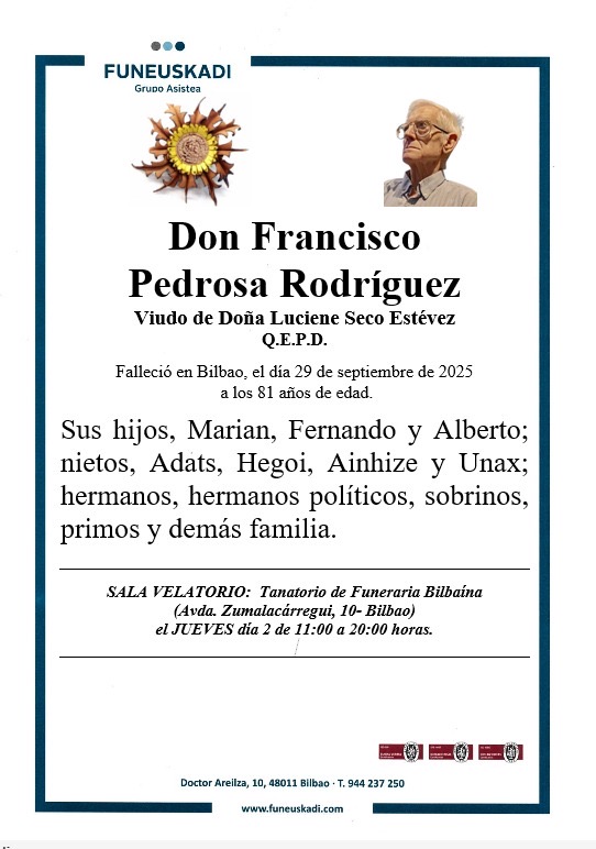 FALLECIMIENTO DE FRANCISCO PEDROSA RODRÍGUEZ