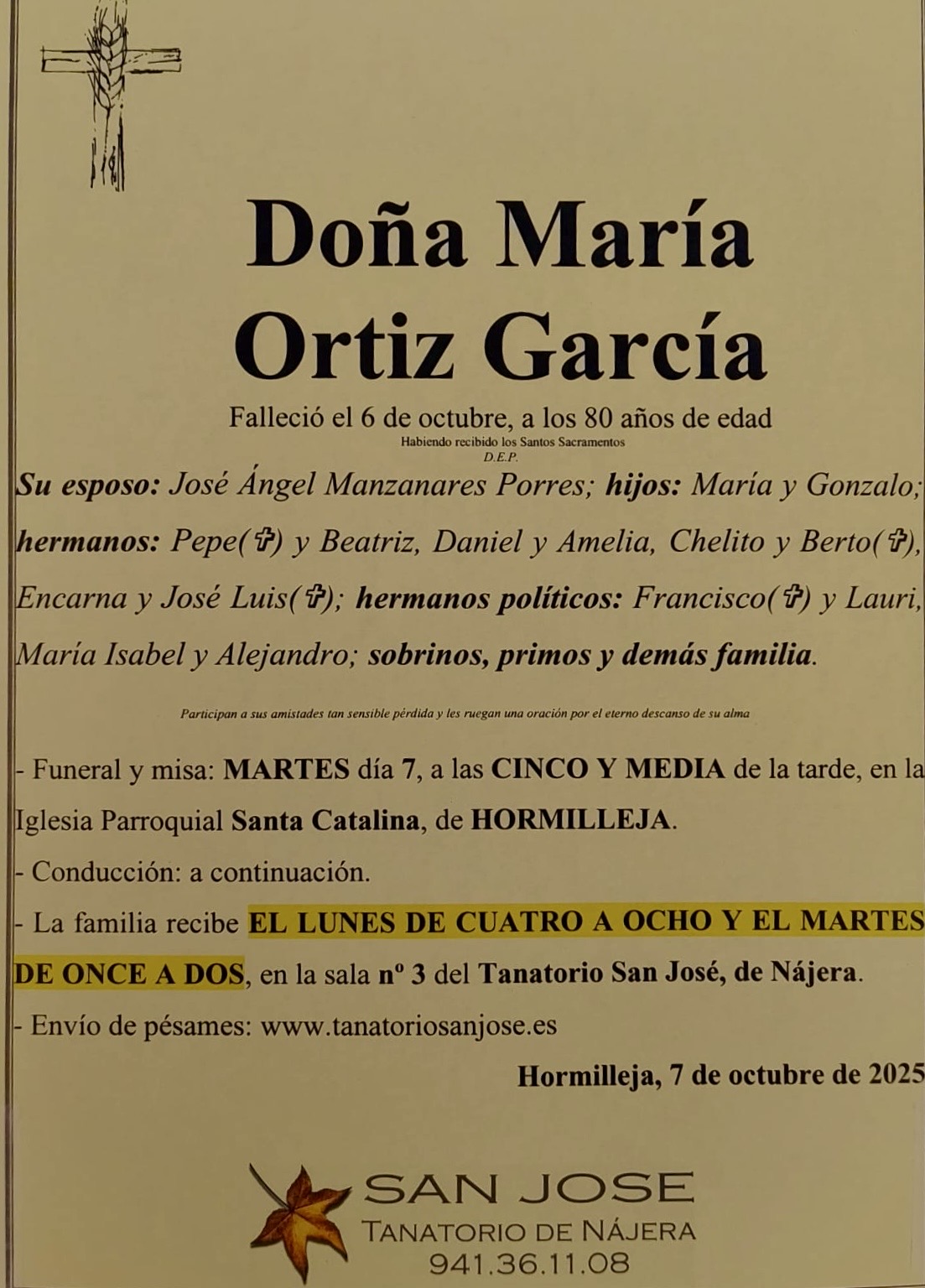 FALLECIMIENTO DE MARÍA ORTIZ GARCÍA