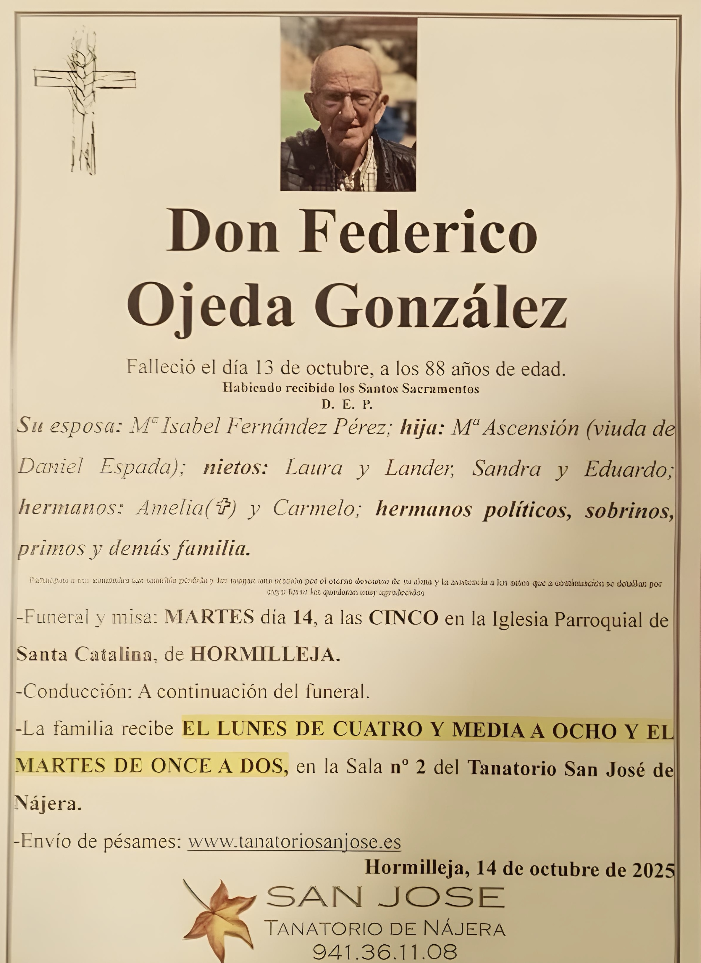 FALLECIMIENTO DE FEDERICO OJEDA GONZÁLEZ