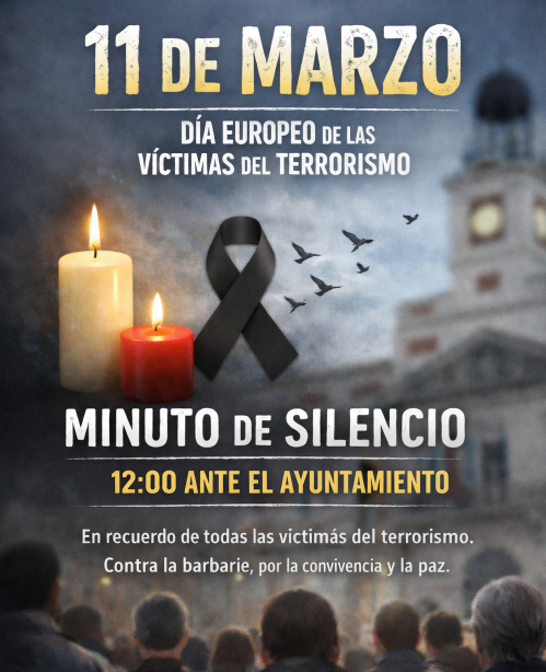 Con motivo de esta jornada de recuerdo y homenaje, y atendiendo a la invitación de la Federación Española de Municipios y Provincias (FEMP), el Ayuntamiento convoca a la ciuda(...)