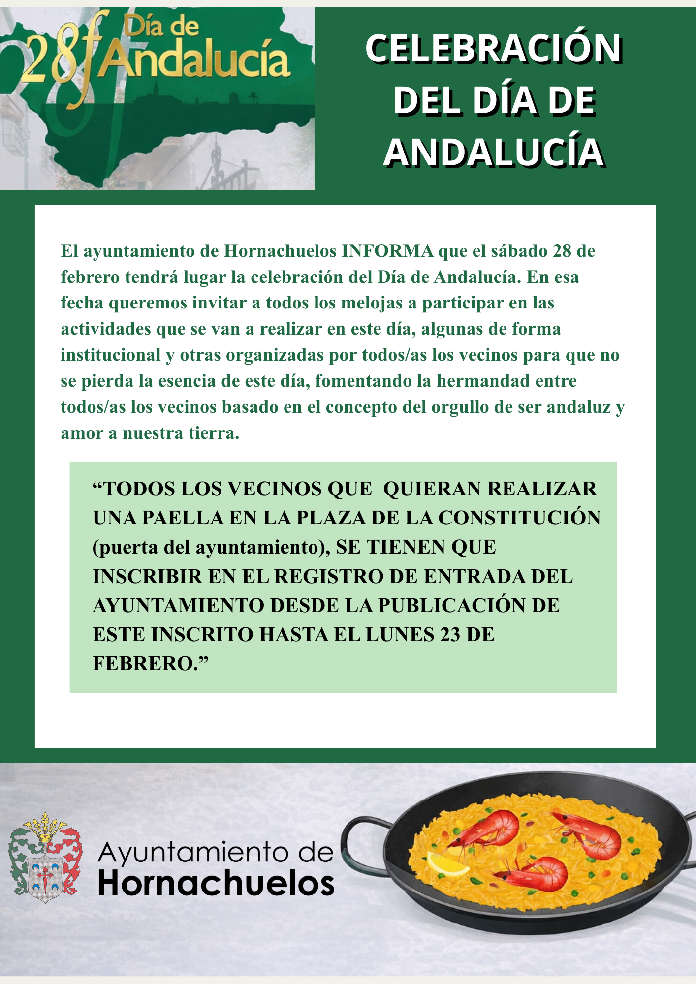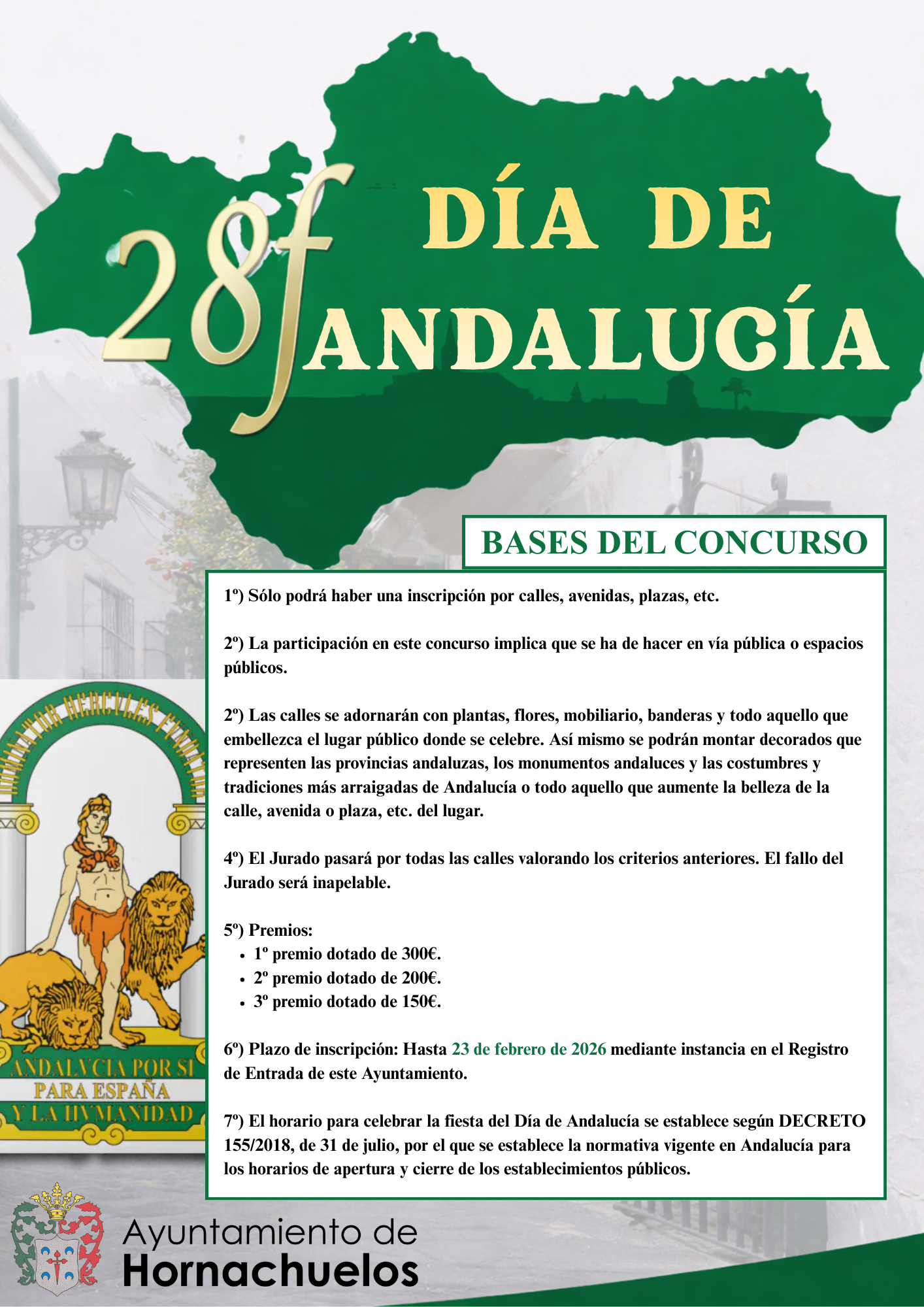El Ayuntamiento de Hornachuelos informa que el próximo 28 de febrero celebraremos el Día de Andalucía.