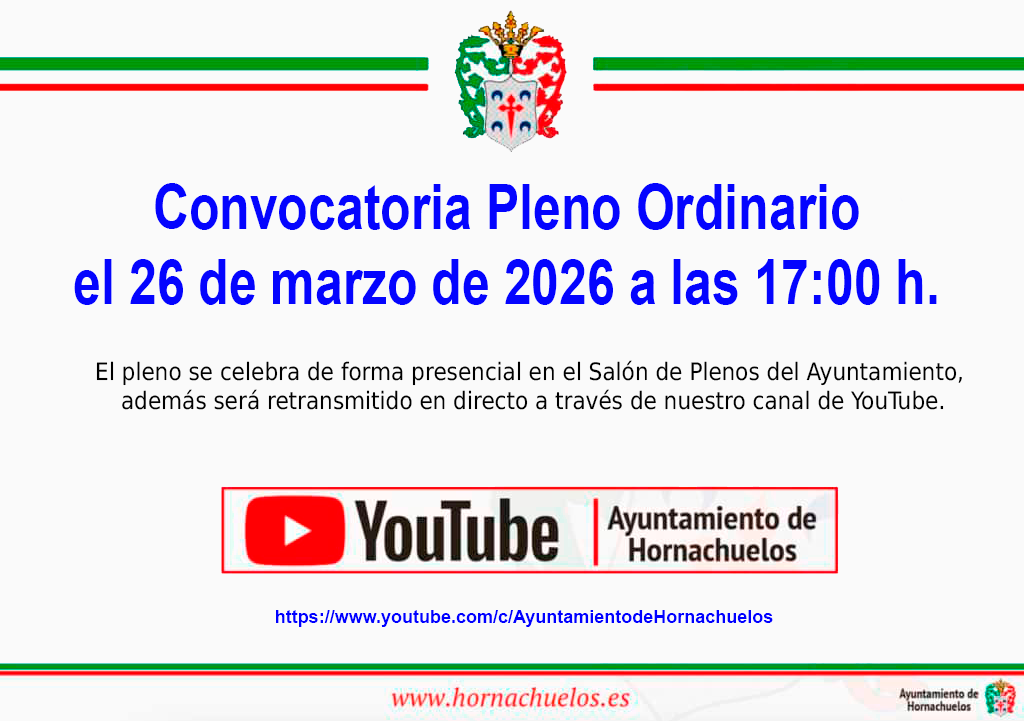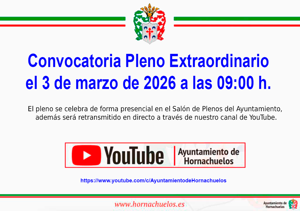 El Ayuntamiento de Hornachuelos convoca 𝗣𝗹𝗲𝗻𝗼 𝗘𝘅𝘁𝗿𝗮𝗼𝗿𝗱𝗶𝗻𝗮𝗿𝗶𝗼 el próximo: