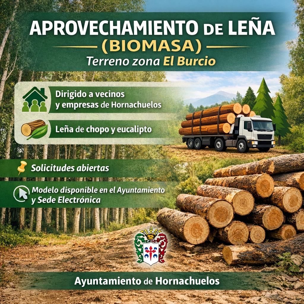 El Ayuntamiento de Hornachuelos informa de la disponibilidad de leña procedente de chopo y eucalipto en terreno municipal de la zona El Burcio, destinada a su aprovechamiento por vecinos y empresas del municipio.