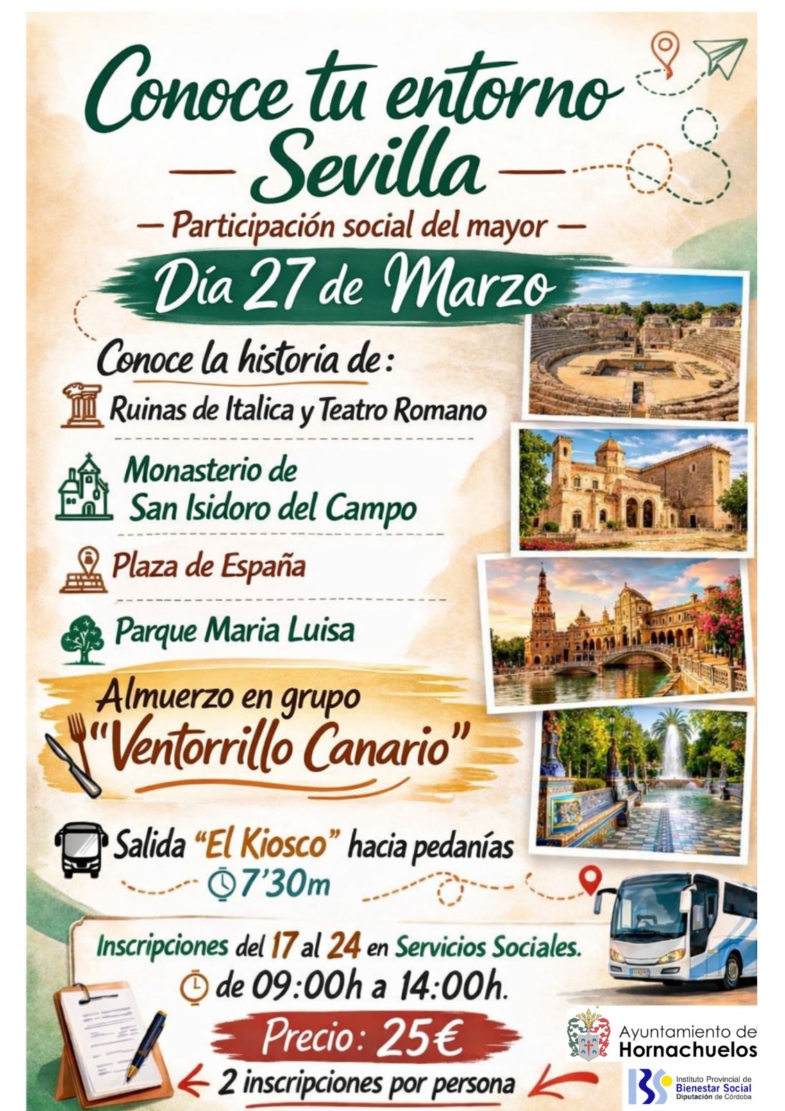 El Ayuntamiento de Hornachuelos organiza una nueva actividad dentro del programa Participación Social del Mayor, con una interesante visita cultural a Sevilla el próximo 27 de marzo.